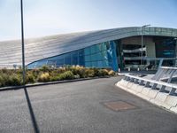 This is an image of a modern architecture building in Holland, located in a business district. The office building has a unique facade made of composite material, and it stands out among the surrounding urban landscape. The road in front of the building is made of asphalt, while the grass and vegetation provide a touch of greenery. The image captures a sunny day in Europe, with shade from the building creating an interesting play of light and shadow. This photo represents the vibrant city life and urban design of Holland.