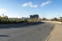 A scenic view of the city of Ottawa, Canada at dawn. The image shows a wide asphalt road surrounded by residential buildings in a residential area. The landscape is adorned with lush trees and clouds in the sky. The road surface is smooth with vegetation lining the curbs. Street lights illuminate the thoroughfare, providing a charming suburban atmosphere. In the distance, an office building can be seen, symbolizing the bustling business district of Ottawa. The break of day unveils a peaceful and serene scene, capturing the essence of urban design in this Canadian city.