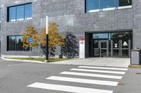 This stock photo features a cityscape of Ottawa, Canada during the day. The image showcases the urban design of the city, with tall office buildings, business district, and infrastructure. The road, made of asphalt, and the sidewalk, with curbs, are lined with trees and vegetation. The street lights illuminate the scene, creating a vibrant city life atmosphere. A zebra crossing or crosswalk can be seen on the road, providing a safe crossing for pedestrians. The photo represents the bustling city, with a mix of business, architecture, and nature elements.