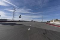 Aerial view of a cityscape with straight roads and bridges. Classic architecture blends with modern urban design. Overhead power lines and motion blur of cars on highways create a dynamic city life.