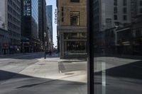 This image showcases the vibrant cityscape of downtown Toronto, Canada. The clear sky reflects on the glass facades of the high-rise buildings, creating a stunning reflection. The classic architecture of the buildings stands in contrast to the modern urban design of the city. The road surface and asphalt curbs lead the viewer's eye towards the busy public spaces in the foreground. The metropolitan area is filled with condominiums, office buildings, and neighborhoods, representing the bustling city life of Toronto. The image captures the essence of this metropolis on a sunny day.