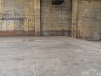 there is a fire hydrant in the middle of a large brick building that is partially covered with cement and cement