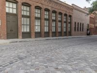 This is an image of a classic architecture building in the city of Los Angeles, California, USA. The photo captures the beauty of the city at dawn with a clear sky above. The road is lined with cobblestones, adding to the charm of the urban landscape. The low angle of the photo showcases the grandeur of the building, possibly a hotel. This image represents the iconic architecture and urban vibe of Los Angeles.
