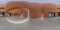 a round shape structure made out of brick, with arches inside and outside of it