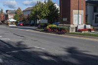 A classic residential neighborhood in Toronto, Canada. The suburban streets are lined with beautiful houses and adorned with classic architecture. Clouds fill the sky on a sunny day, adding to the picturesque scenery.