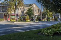 This is an image of a classic residential neighborhood in Ontario, Canada. The picture captures a clear sky above the suburban area, with well-maintained houses and properties lined up along the road. The road surface is made of smooth asphalt, surrounded by green vegetation. The neighborhood represents the charm of suburban living, with classic architecture and picturesque windows displaying glimpses of daily life. This photo is a portrayal of a peaceful day in Ontario, showcasing the real estate and residential areas of the town.
