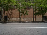 A classic Barcelona warehouse with brick walls and industrial architecture. The urban design blends with the city's vegetation. The road leading to the storage depot showcases the bustling city life.