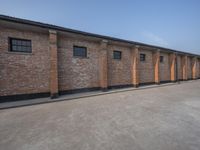 A row of classic brick buildings with windows, showcasing the architectural beauty of China. This urban design in Shanghai, Suzhou, and Hangzhou creates a vibrant city life. The brick walls and concrete facades are fixtures of the art districts in Asia.
