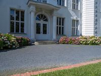 A classic European villa surrounded by lush green grass. The surface is covered with gravel, giving it a timeless elegance. This residential home in Berlin showcases beautiful architecture in a picturesque countryside setting.