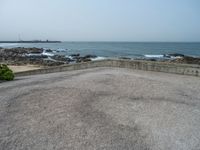 A clear day in Porto, Portugal, featuring a coastal concrete road leading to ocean waters. Open space offers a view of boats on the beach. Discover the beauty of Europe's coastal concrete streets.