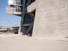 Modern architecture of Los Angeles, USA, showcasing concrete office buildings against a clear sky. A typical urban day in California, highlighting the sleek walls and surfaces of the city's office structures.