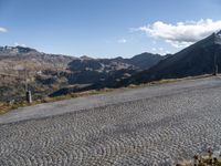 A cobblestone road in Austria, winding through the picturesque landscape of mountains and nature. Clear skies provide a stunning backdrop. Explore the beauty of Europe on this scenic road trip.