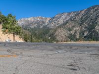 This stunning stock photo showcases a clear blue sky and a breathtaking mountain landscape. The image captures the beauty of an open space surrounded by majestic mountains. The day is sunny, highlighting the vibrant colors of nature. The ground consists of dirt and gravel, providing a rugged surface for outdoor enthusiasts to explore. This picturesque scene is perfect for projects related to travel, nature, and adventure.