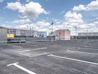 This is an image of a spacious parking lot in Berlin, Germany. The asphalt road is lined with modern architecture, reflecting the urban design of the city. The clear sky above contrasts with the clouds and creates a bright and inviting atmosphere. The open space of the parking lot provides ample parking space for visitors. This photo represents the vibrant city life and modern architecture of Berlin.