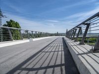 A modern architectural marvel in Germany, this building stands tall against a clear sky. The surrounding landscape features lush vegetation and a road that leads to a bridge. Nature and architecture blend seamlessly in this picturesque European scene.