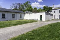 This image captures the classic architecture and lush green surroundings of a tourist attraction in Hamilton, Ontario, Canada. The white building features a beautiful arched doorway and is set on a grassy land lot with a paved pathway. The clear sky above complements the historic charm of the area. This photo represents a day in a suburban residential area, where tourists can enjoy the beauty and tranquility of the architecture and vegetation. It's a perfect destination for those interested in exploring the touristic and cultural offerings of Hamilton, Ontario.