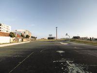Experience a game of basketball on Portugal's coastal asphalt. Open space offers a clear view of the ocean, with the dawn sky enhancing this beautiful European landscape. Perfect for sport and beach enthusiasts alike.