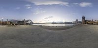 Coastal City Skyline at Sunset: A Bridge in the Distance