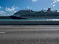 A view of Miami's iconic skyline and coastal road, overlooking the beautiful ocean. The cityscape is filled with skyscrapers, creating an impressive urban design. The clear sky and sparkling water add to the beauty of this coastal city.