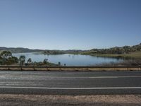 A picturesque landscape with a clear sky and a lake in the background. Trees dot the Lacustrine plain, creating a beautiful natural scene. A road with Armco barriers and guard rails cuts through the plain, adding a touch of human infrastructure to the coastal view.