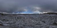 Coastal Landscape: Waves in the Ocean Under a Grey Sky