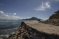 A breathtaking coastal landscape featuring highlands, cliffs, and rocky shores. The crystal-clear water sparkles beneath a cloud-speckled sky. The perfect destination for outdoor recreation and enjoying nature's beauty.