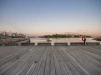 This stock photo features a breathtaking coastal pier at dawn. The clear sky provides a beautiful backdrop as the sun begins its ascent over the horizon. The jetty is made of wood and its flooring adds a touch of rustic elegance to the scene. The peacefulness of the surrounding nature and the calm waters of the ocean make it a perfect location for recreational activities such as fishing or simply enjoying the tranquil ambiance. The afterglow of the dawn adds a touch of magic to the entire landscape.