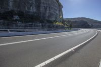 A scenic coastal road with a clear sky and ocean view. The road surface is smooth asphalt, winding through lush vegetation and mountains. Armco barriers and guard rails ensure safety while enjoying the recreational activities and natural beauty of the area.