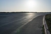 A picturesque view of the coastal road in Los Angeles at dawn. The sun is visible in the clear sky, reflecting off the ocean and creating a beautiful sunny landscape. Residential areas line the shore, providing a perfect mix of nature and infrastructure.