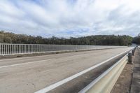 A coastal road winds its way along the water's edge, with a clear blue sky overhead. Trees frame the view, providing a picturesque backdrop. The road is lined with a wood fence and guard rails, ensuring safety.