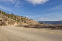 A scenic coastal road in West Kelowna, British Columbia, Canada. The road winds through the highlands, offering breathtaking views of Okanagan Lake. Lush vegetation and towering mountains complete the picturesque landscape.