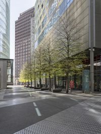 This photo captures the modern architecture and vibrant city life of Berlin, Germany. The image showcases the iconic Potsdamer Platz, a popular tourist attraction and business district. The glass walls of the office buildings and storefronts reflect the urban design and metropolitan atmosphere of the city. The cobblestone road and tree-lined streets add to the charm of the European city. The snapshot perfectly captures the hustle and bustle of city life, with people walking and shopping in the public spaces. This image represents the unique blend of history, culture, and commerce in Berlin.