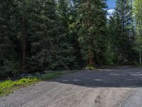 Sunny day in Colorado's Aspen forest. Hard shadows create contrast on dirt and gravel surfaces. Mountainous landscape with trees casting shadows. Natural beauty of the USA captured in the wilderness.