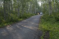 A picturesque landscape in Colorado, USA. The asphalt road winds through the forest and grassy meadows, surrounded by majestic mountains. Nature and recreational paths intertwine, leading to the scenic Sunrise Campground near the tranquil lake.