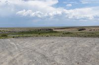 This image captures the beautiful and rugged landscape of Colorado, USA. The photo showcases an open space with a dirt road leading through the grassy terrain. The scenery features rolling highlands and hills, giving way to vast plains and a wilderness backdrop. The sky is filled with fluffy clouds, adding to the natural ambiance. It is a perfect representation of the diverse geology and natural environment found in the area. The photo was taken near Antonito, Colorado and invites viewers to explore the off-road tracks and highways that traverse this stunning terrain.