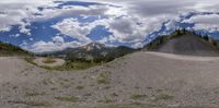 panorama fisheye image of mountain range on a cloudy day with no clouds in sight