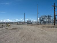 A rural landscape in Colorado, USA. Open spaces and dirt roads dominate the scene. The sky is filled with clouds on a sunny day. A power plant and solar panels add to the natural beauty.