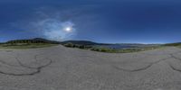 Open space landscape in Colorado, with a clear sky and the majestic Rocky Mountains in the background. A road winds through grassy plains and evergreen forests, leading to the azure waters of Taylor Park Reservoir.