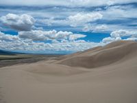 the sand hills are very tall and the clouds are beautiful in the sky over it