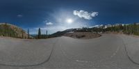 Sunny day in Colorado, USA, with hard shadows casting over the suburban landscape. Gravel and dirt surfaces curve through open spaces. Rocks and asphalt blend in the natural scenery under clear skies.