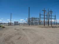 A rural landscape in Colorado, USA, with an open space area and dirt road. Clouds fill the sky on a sunny day, highlighting the natural beauty. In the distance, a power plant harnesses solar energy.