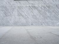 This photo captures a skateboarder doing a trick on the concrete floor of a modern skate park in Spain. The futuristic architecture of the park with its silver walls and grey flooring creates a sleek and stylish backdrop. The skateboarder, wearing sunglasses, adds a sense of coolness to the scene. The clear sky above and the line of asphalt create a clean and minimalist look. This image represents the modern architecture and skateboarding culture in Spain. Perfect for showcasing urban sports and contemporary design.
