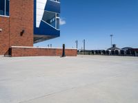 A daytime view of a concrete surface in a parking lot, with blue skies and nearby buildings. The location hints at a sport stadium. Ideal for football-related articles and content about outdoor sports.