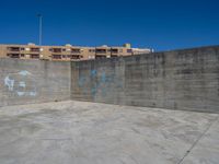 A concrete wall by the coast of Porto, Portugal. Overlooking the open space of a beach with clear ocean waters. Clouds decorate the coastal skyline on a bright European day.