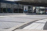 A bustling street in Toronto, Ontario, lined with contemporary buildings showcasing modern architecture. Brick-paved sidewalks lead pedestrians past vibrant advertisements on shop windows. The cityscape is alive with urban design and a bustling business district.