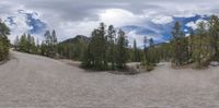 Colorado's sunny suburban landscape. A road curves through open spaces with visible hard shadows. Gravel area contrasts with dirt surfaces under the bright sun. Typical USA residential setting with rocky and sandy surfaces.