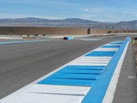 A race track in the USA on a sunny day. The asphalt road is lined with clouds in the background. A curve in the road adds excitement to the race. Get ready for a thrilling day of racing.