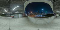 A breathtaking view of the Dallas skyline at night, showcasing modern architecture and a bustling cityscape. The circular panorama captures the essence of the metropolitan area, with its towering skyscrapers and vibrant artificial lights.