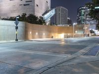 This stock photo shows a dark city area with no one in it at night. The streets are illuminated by street lights, creating a beautiful contrast between light and shadows. The modern architecture of the buildings adds a touch of sophistication to the scene. The clear sky above reveals a hint of moonlight, making it a serene urban landscape. This photo is perfect for illustrating concepts such as urban life, cityscape, business district, and metropolitan areas. It would also be suitable for articles or designs related to architecture, road infrastructure, or nightlife in Dallas, Texas.