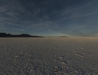 A breathtaking view of the Utah desert at dawn. The sandy landscape stretches for miles, meeting the calm waters of the ocean. The mountains in the background create a stunning natural backdrop. The horizon is painted with beautiful hues of pink and orange as the sun rises. The atmosphere is serene and peaceful, making it the perfect spot to enjoy the tranquil beauty of nature. Contrails streak across the clear sky, adding a touch of movement and interest to the scene. The surface of the salt lake glistens under the first light of day, reflecting the clouds and creating a sense of serenity. This emotional image captures the essence of Utah's unique and captivating desert environment.